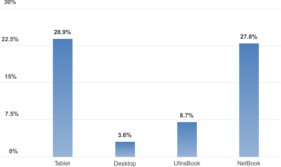 - The Desktop, with an 8-core processor, realized modest 3.6% gains